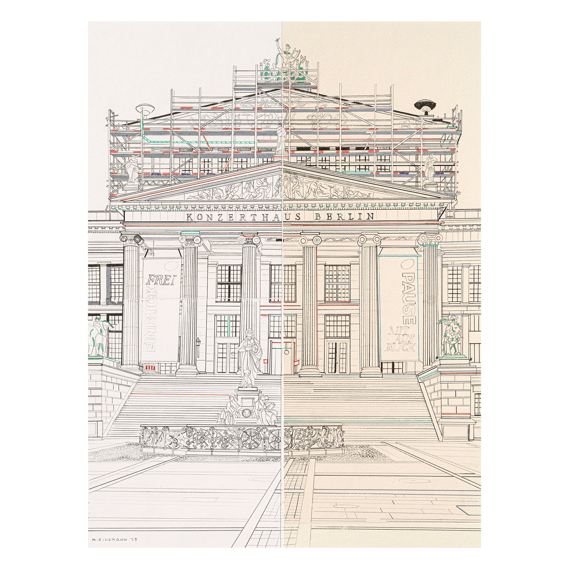 Das Ergebnis ist eine lebendige Bestandsaufnahme der Stadt: Mit Wachheit, Präzision und Humor verdichtet die Künstlerin Marion Eichmann ihre Beobachtungen zu einer Berlin-Erzählung, die Vertrautes neu sehen lässt.